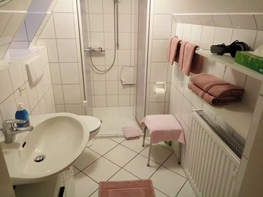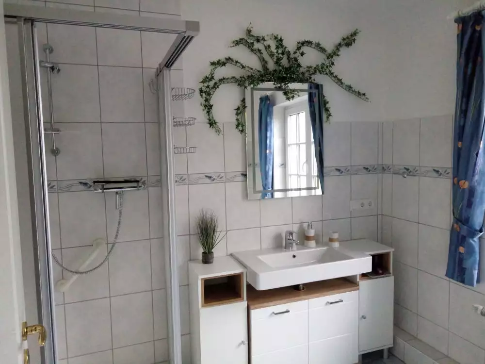 Ein Schlafzimmer mit Doppelbett und ausreichend Schrankplatz sowie ein Bad mit Dusche, WC und Föhn befinden sich ebenfalls im Erdgeschoss. WLAN steht Ihnen selbstverständlich zur Verfügung.